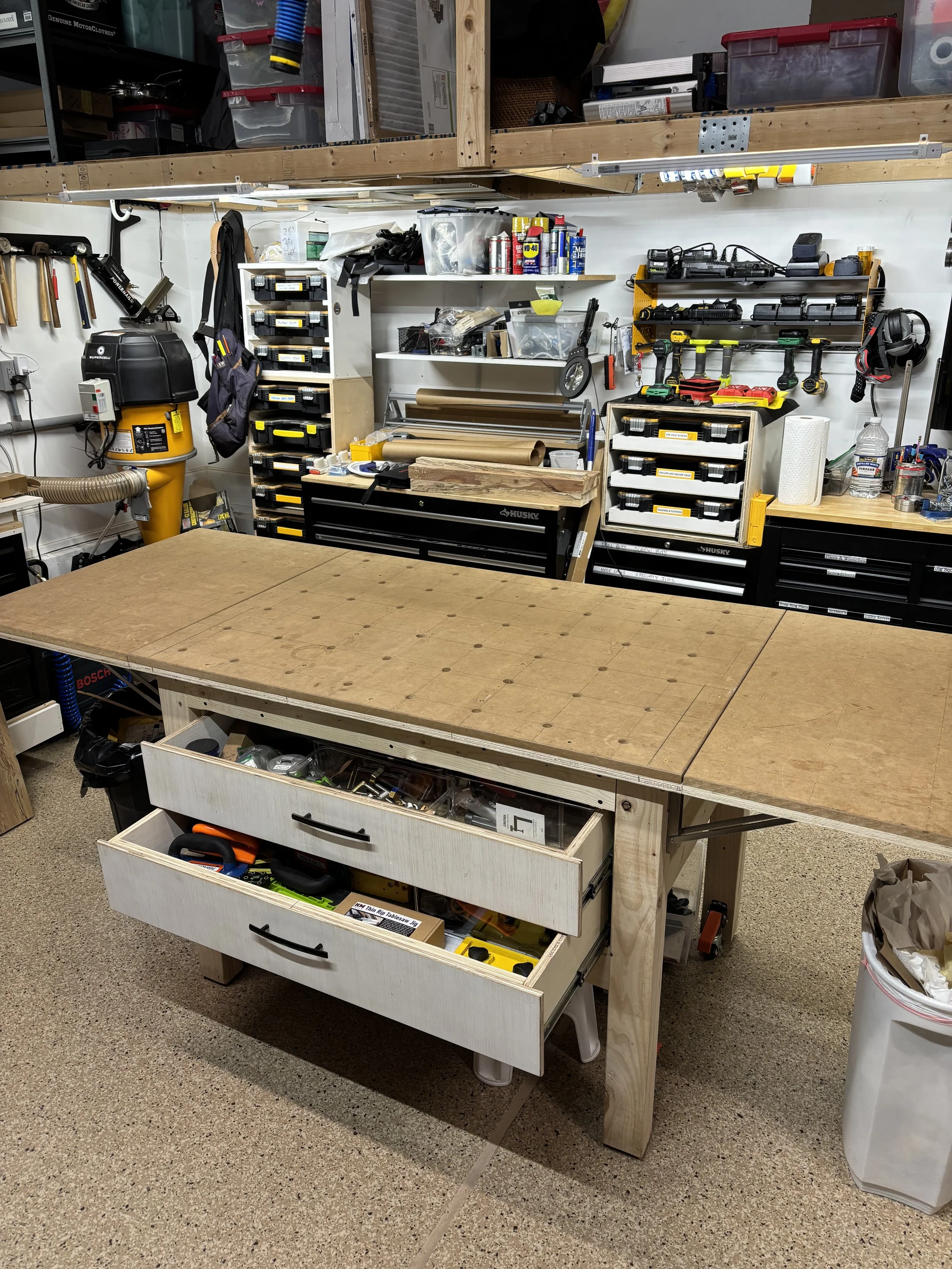 Custom-built storage solutions (like our hardwood offcut organizer!)